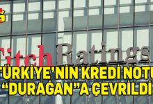 Uluslararası kredi derecelendirme kuruluşu Fitch Ratings, Türkiye’nin kredi notunu “BB-” olarak korurken, kredi notu görünümünü “pozitif”ten “durağan”a çevirdi. Fitch Ratings, Türkiye ekonomisine ilişkin değerlendirmesini yayımladı. Kredi derecelendirme kuruluşundan yapılan açıklamada, Türkiye’nin uzun vadeli döviz cinsinden…