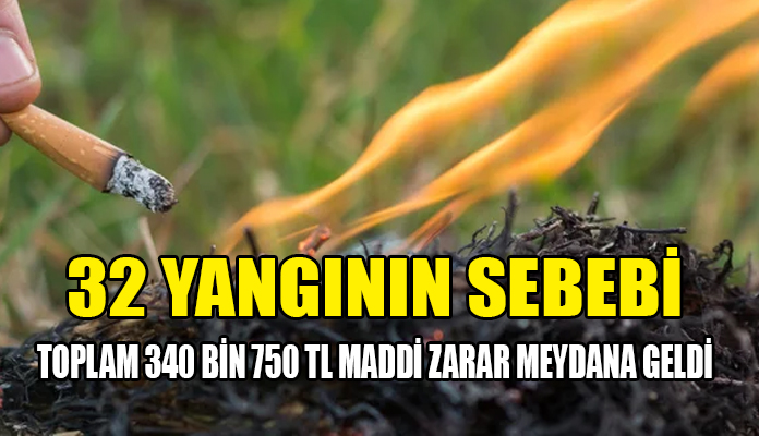 01 Ocak – 09 Mayıs 2022 tarihleri arasında muhtemelen sönmemiş sigara izmaritinden toplam 32 yangın çıkmış olup, bu yangınlar sonucu kuru otlar, 163 dönüm ekin, 94 adet balya yanmıştır. Bu yangınlar da toplam 340.750 TL maddi zarar meydana gelmiştir.