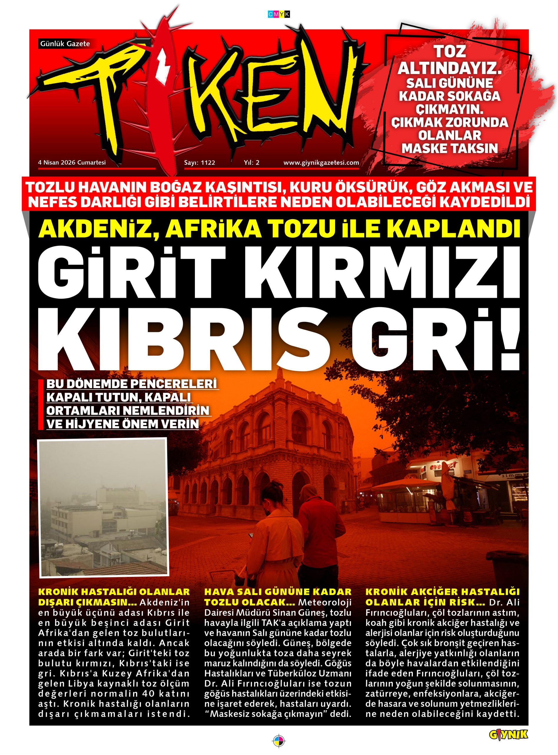 04 Nisan 2026 Gıynık Medya Manşetleri