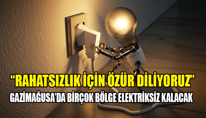 Kıbrıs Türk Elektrik Kurumu’ndan (KIB-TEK) yapılan açıklamaya göre, bugün Gazimağusa’da bazı bölgelerde 09.00 ile 15.00 saatleri arasında birer saat dönüşümlü olacak şekilde iki trafo merkezinde yapılacak bakım-onarım çalışması nedeniyle elektrik kesintisi olacak.