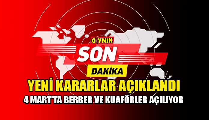 - Berber ve kuaförler 3 Mart’a kadar PCR testlerini tamamlayarak 4 Mart’tan itibaren randevulu olarak hizmet vermeye başlayacaklar.