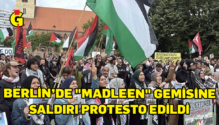 Berlin Belediye binası önündeki Neptunbrunnen Meydanı’nda bir araya gelen yüzlerce kişi, “Madleen” gemisine yapılan saldırıyı protesto ederek, gemide alıkonulan 12 aktivistin serbest bırakılması çağrısında bulundu.