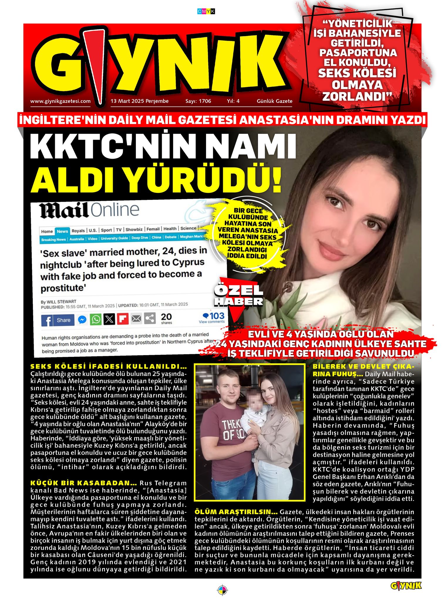 13 Mart Perşembe 2025, Gıynık Gazete manşetleri