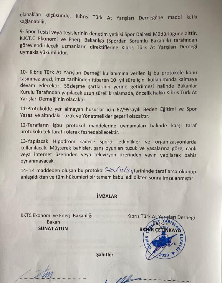 Çetinkaya yaptığı açıklamada, projeyi büyük emeklerle protokol imzalama aşamasına getirdiklerini belirtti. Ancak dönemin spordan sorumlu bakanı Sunat Atun’un, protokolde yer alan “Şans Oyunları ile ilgili 13. Madde” nedeniyle içinin rahat etmediğini belirterek protokolü tek taraflı feshettiğini aktardı.