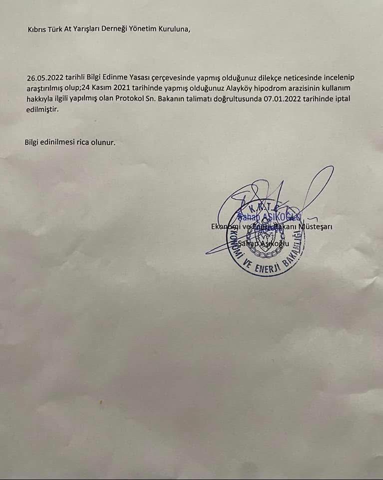 “Olan, Kıbrıs’ın kuzeyindeki at yarışçılığı camiasına oldu” diyen Çetinkaya, projenin iptalinin yalnızca sektöre değil, ülke sporuna ve ekonomisine de ciddi bir darbe vurduğunu ifade etti.