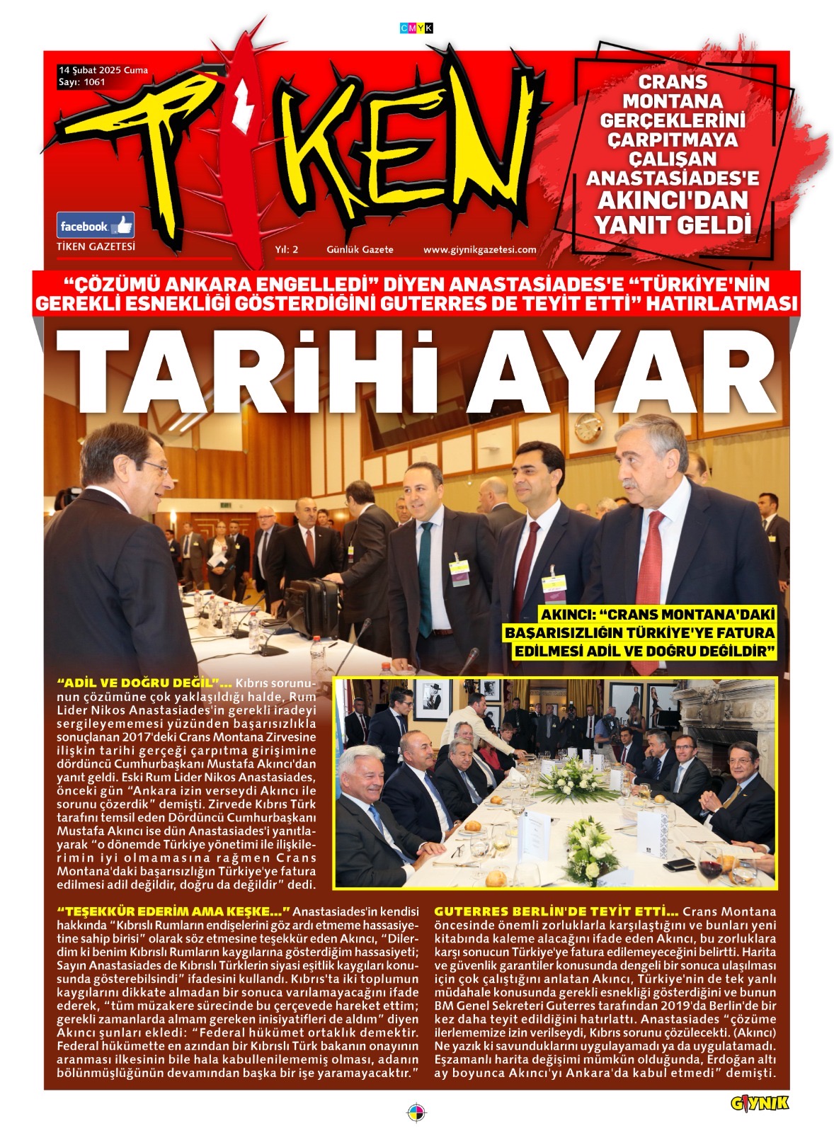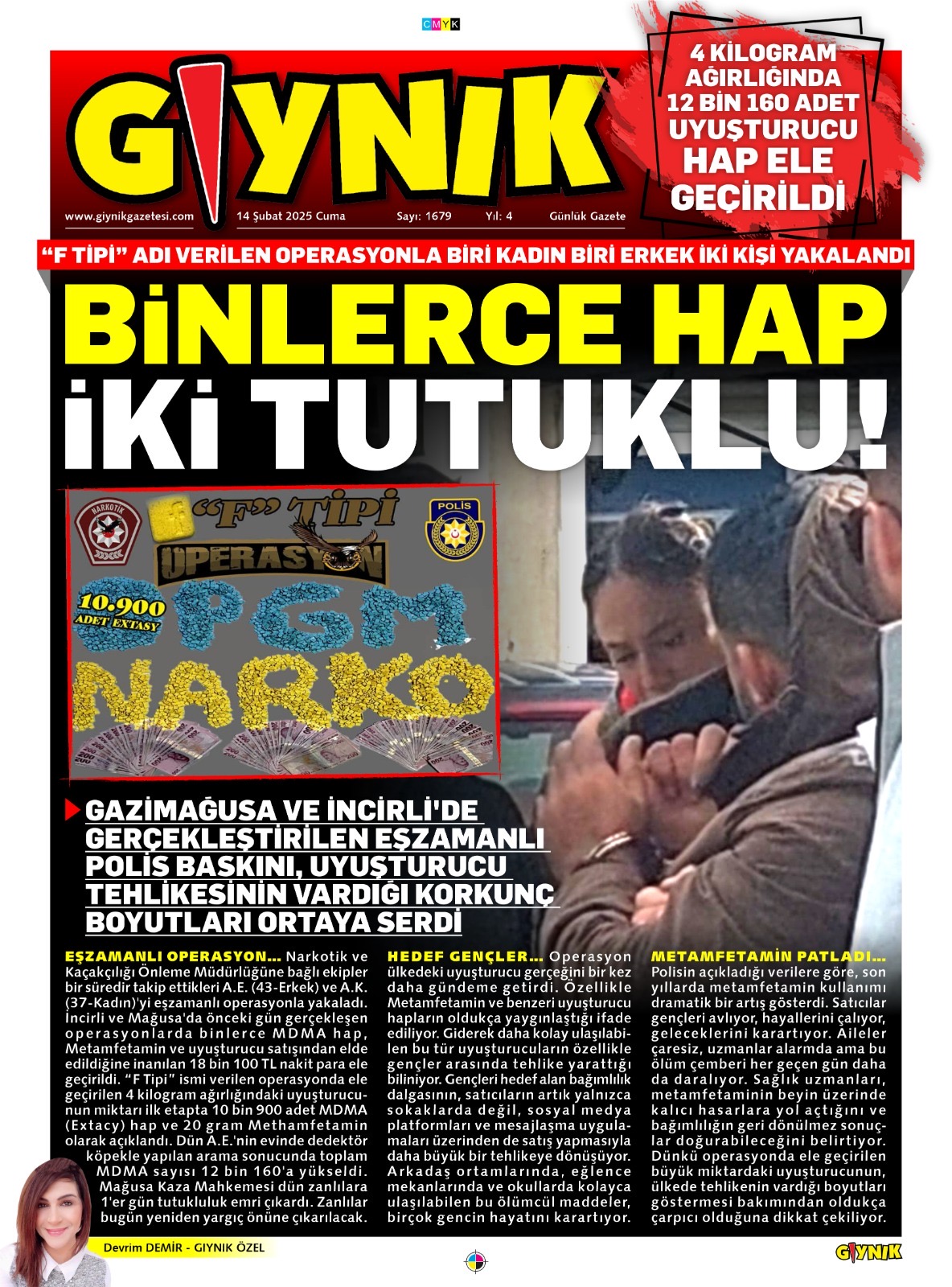 14 Şubat Cuma 2025 , Gıynık Medya manşetleri