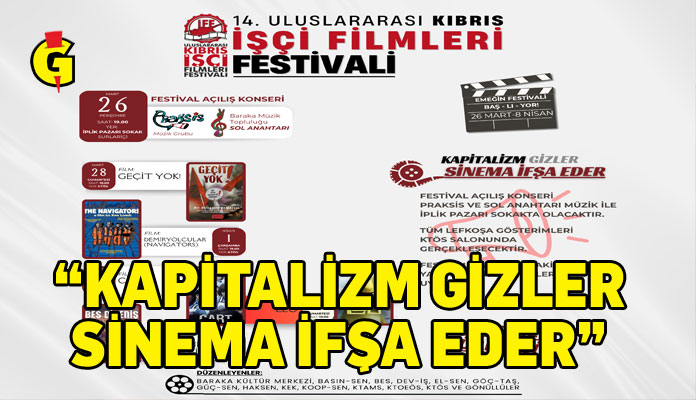 14. Uluslararası Kıbrıs İşçi Filmleri Festivali, 26 Mart Perşembe günü Praksis müzik grubu ve Baraka Müzik Topluluğu Sol Anahtarı konseriyle başlayacak.