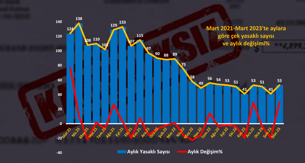 Finans çevreleri çek yasaklıları sayısının 2016’dan beri kademeli olarak düştüğünü, 2018’in son çeyreğindeki döviz krizindeki bozulmaya rağmen, 2019’un ikinci yarısında rakamlarda kısmen iyileşme sağlandığını hatırlatıyor. 2020 ve 2021’deki Covid-19 salgınının çek kullanımını etkilediğine işaret eden finans çevreleri, bankaların aldıkları önlemlerle çek yasaklılarını minimum seviyede tutmayı başardıklarına vurgu yapıyor. Ancak, 2022’de başlayıp 2023’te hızlanan “ağır ekonomik krizin” bu yılın ikinci yarısında çek yasaklı sayısını son yılların en yüksek noktasına taşımasından endişe ediliyor.