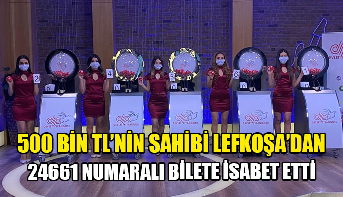 Kuzey Kıbrıs Türk Cumhuriyeti Piyangolar Birimi tarafından gerçekleştirilen 15 Ocak 2022 tarihli Devlet Piyangosu bu akşam çekildi. Çekilişte 500 Bin TL’lik büyük ikramiye “24661” numaralı bilete isabet etti.