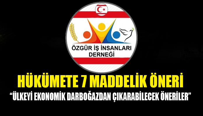 KKTC Özgür İş İnsanları Derneği’nden sunulan 7 maddelik öneri ise şu şekilde: