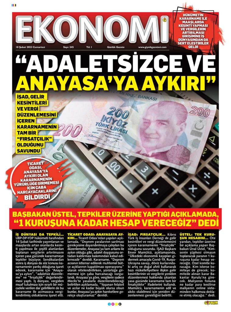 Anasayfa/e-Gazete/18 Şubat Gıynık Medya Manşetleri e-GazeteSürmanşet 18 Şubat Gıynık Medya Manşetleri 17 Şubat 2023 Facebook X Messenger Messenger WhatsApp Telegram Viber E-Posta ile paylaş Yazdır 17 Şubat 2023 Facebook X Messenger Messenger WhatsApp Telegram Viber E-Posta ile paylaş Yazdır