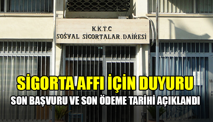 “24 Mayıs 2022 tarihinde Resmi Gazete’de yayımlanarak yürürlüğe giren 25/2022 ve 28/2022 sayılı Yasa Gücünde Kararnameler ile Sosyal Sigortalar Dairesine borcu bulunan işveren ve bağımsız çalışanların bu borçlarını, gecikmiş prim borçları ve gecikme zamlarının ödeme planı ile ilgili kurallara ilişkin 6/2020 sayılı Sosyal Güvenlik (Değişiklik) ve 8/2020 sayılı Kıbrıs Türk Sosyal Sigortalar (Değişiklik) Yasaları çerçevesinde ödeyebilmeleri için müracaat süresi 29 Temmuz 2022, ödeme süresi ise 30 Eylül 2022 tarihine kadar uzatılmıştır.