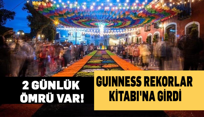 Meksika’da düzenlenen geleneksel şenlikte renkli talaş ve çiçeklerden yapılan 3 bin 932 metrelik halı Guinness Rekorlar Kitabı’na girdi.