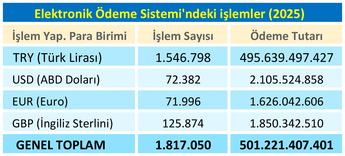 2025’te elektronik ödeme sistemi (EÖS) kapsamında 1,8 milyondan fazla işlem yaptık
