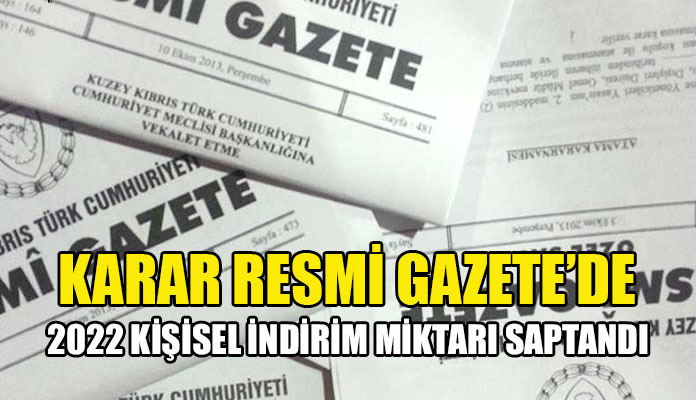 Bakanlar Kurulu, 2022 vergilendirme dönemi için kişisel indirim miktarını 75 bin 600 TL olarak saptadı.