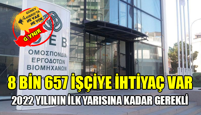 Güney Kıbrıs’ta 2022 yılının ilk yarısına kadar 8 bin 657 işçiye ihtiyaç olduğu haber verildi.