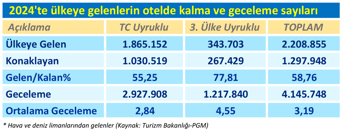 TC uyruklular otelde ortalama 2.8 gece, 3’üncü ülke uyruklular 4.5 gece kalıyor