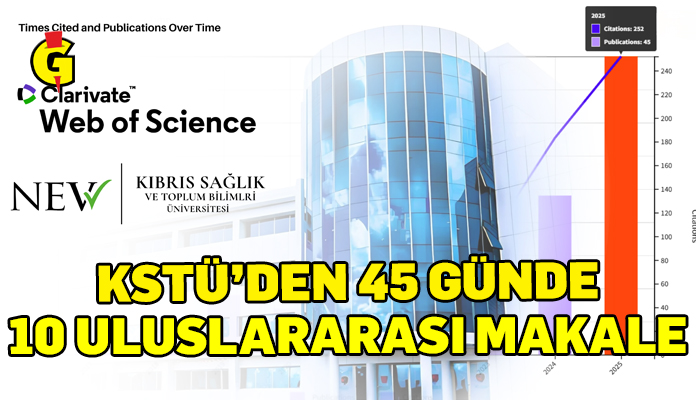 2025 - 2026 akademik yılını 13 Ekim 2025 tarihi itibariyle başlatan Kıbrıs Sağlık ve Toplum Bilimleri Üniversitesi (KSTÜ) öğretim elemanlarınca 45 gün gibi kısa bir sürede Web of Science veri tabanında taranan dergilerde 10 makale yayınlandı.