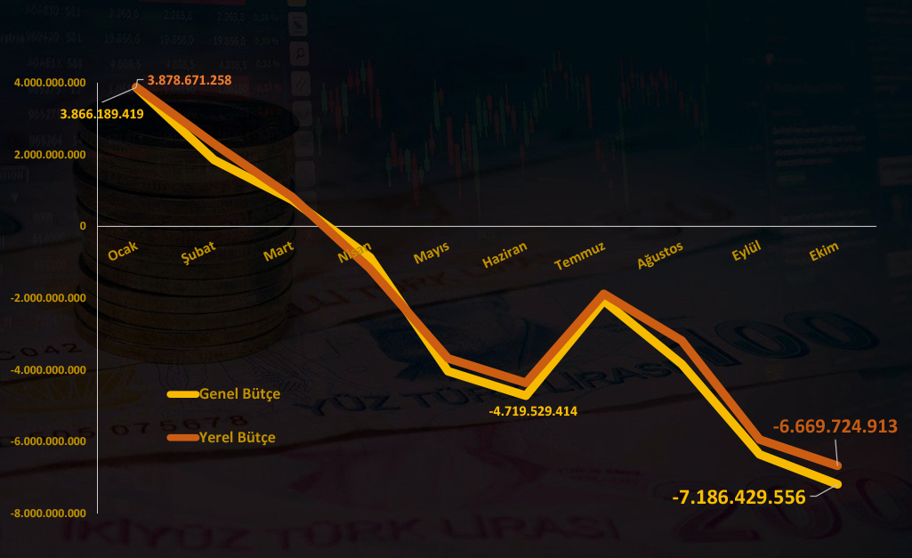 10 aylık sürede genel gelirler 88.2 milyar lira olurken, giderler 94.7 milyara dayandı