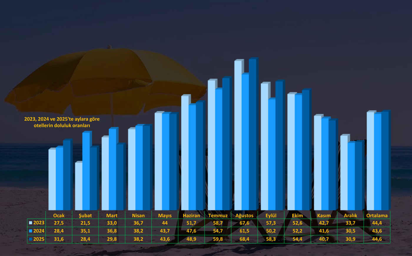 Geçtiğimiz yılın en yüksek doluluk oranı %68.4 ile ağustos ayında yakalandı