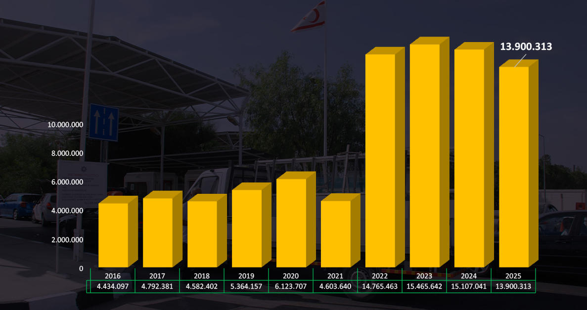 Öte yandan, Yeşil Hat Tüzüğü (EC866/2004) kapsamında 2004’ün Ağustos ayı içinde 3 bin 847 Euro ile başlayan ticarette 2025 sonuna kadar elektrik dahil, toplam 167 milyon 293 bin Euro’luk satış yapıldı. Ticaret Odası’nın verilerine göre, yaklaşık 22 yıllık sürede Güney Kıbrıs’a yönelik toplam mal satışı 138 milyon 452 bin Euro seviyesinde hesaplanırken, Temmuz 2011 ile Mart 2012 arasındaki dokuz aylık sürede ise 28 milyon 840 bin Euro tutarında elektrik satışı yapılmıştı.