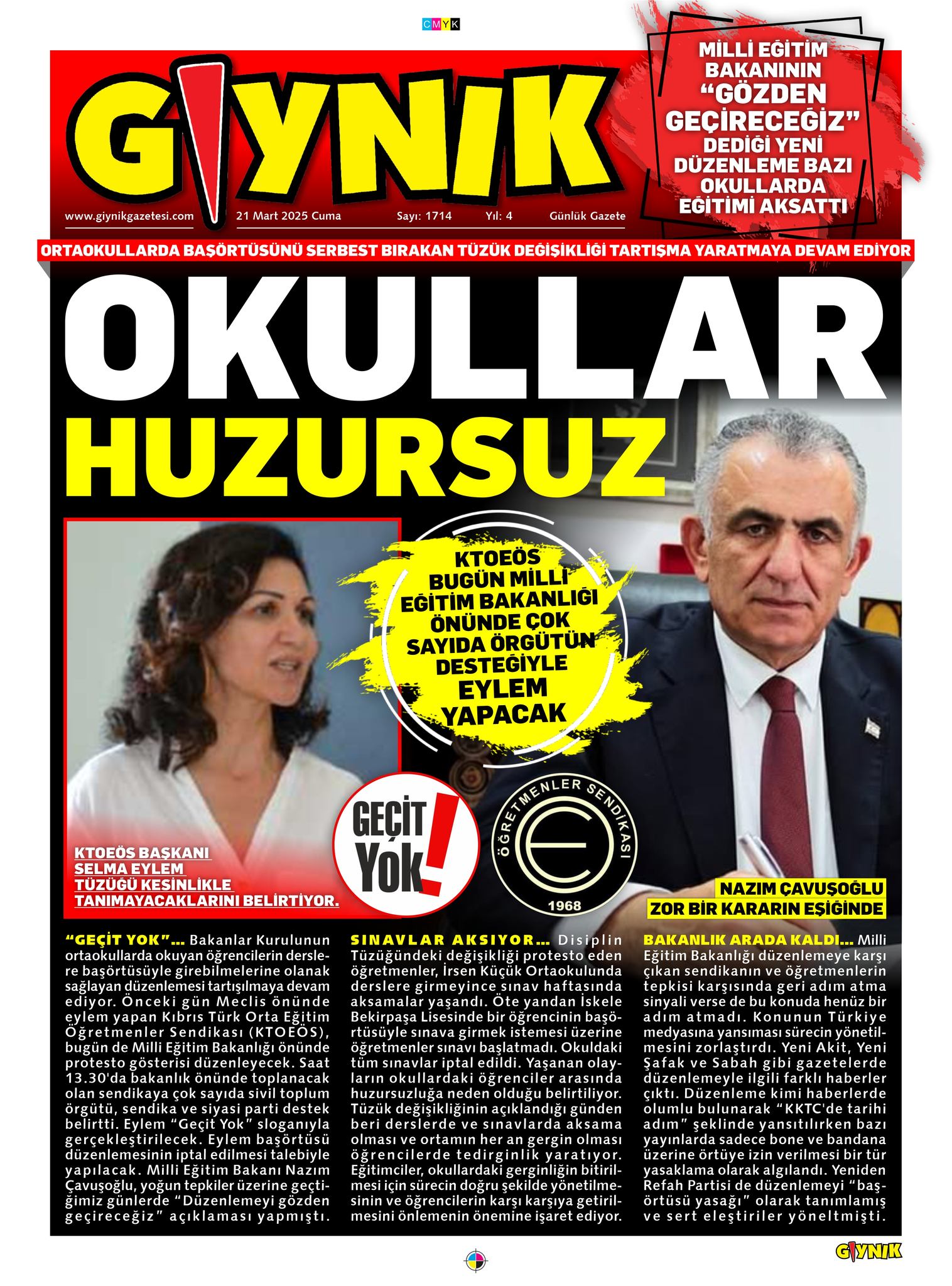 21 Mart Cuma 2025, Gıynık Medya manşetleri