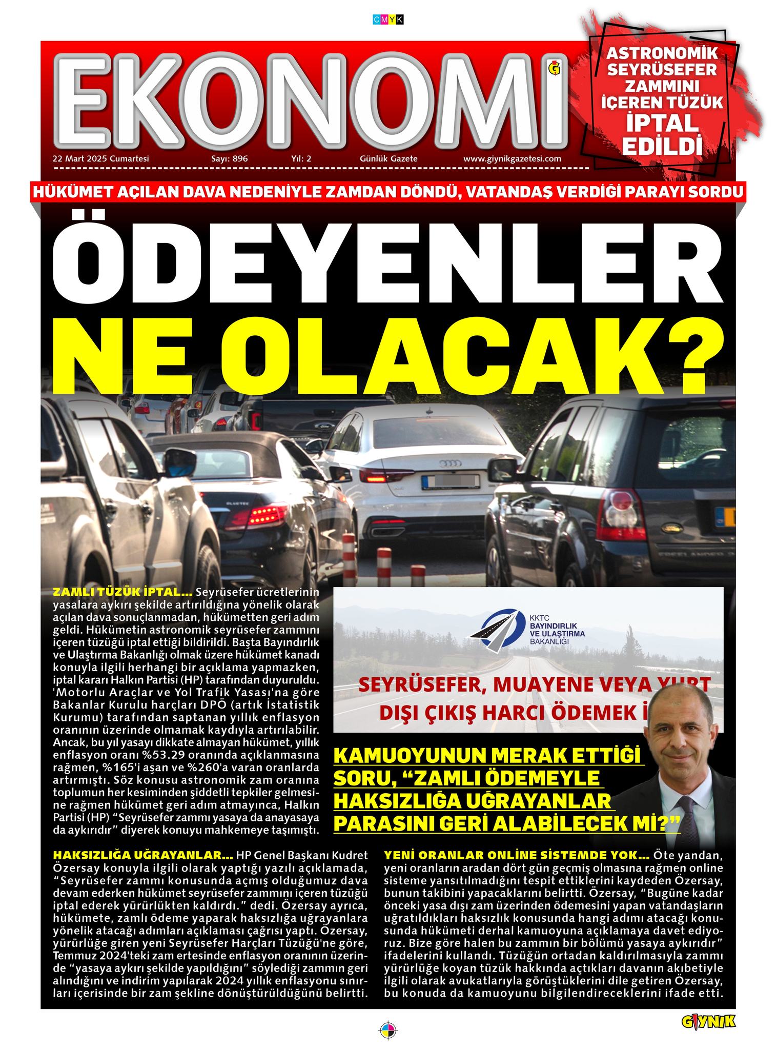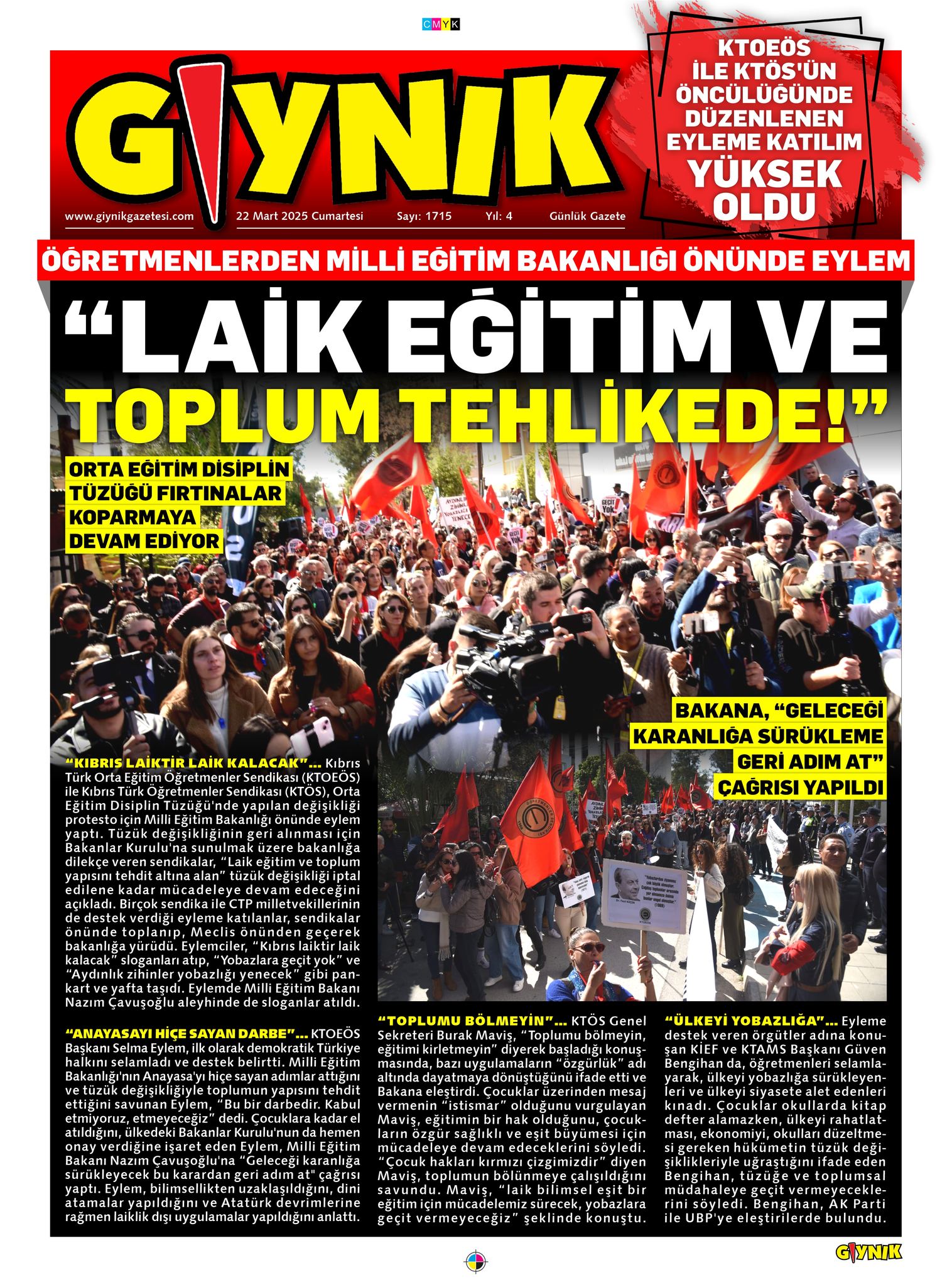 22 Mart Cumartesi 2025, Gıynık Medya manşetleri