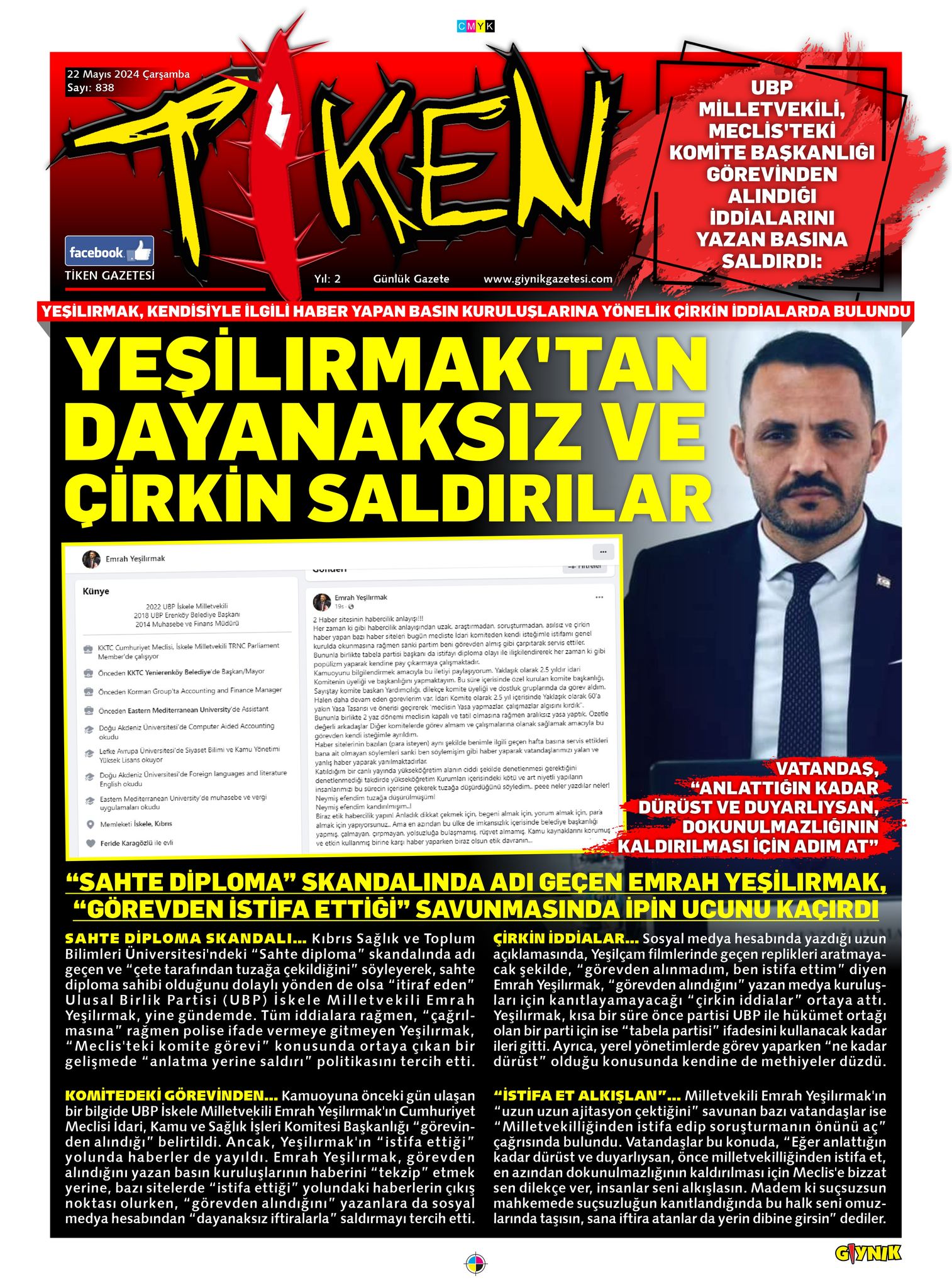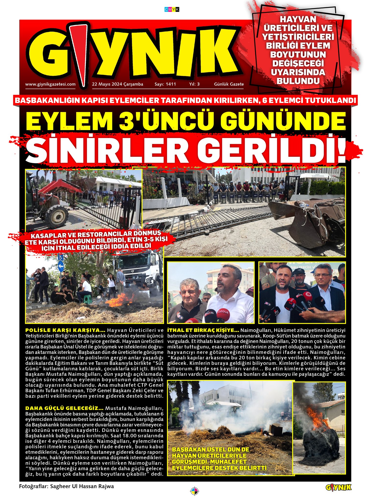 22 Mayıs Çarşamba, Gıynık Medya manşetleri
