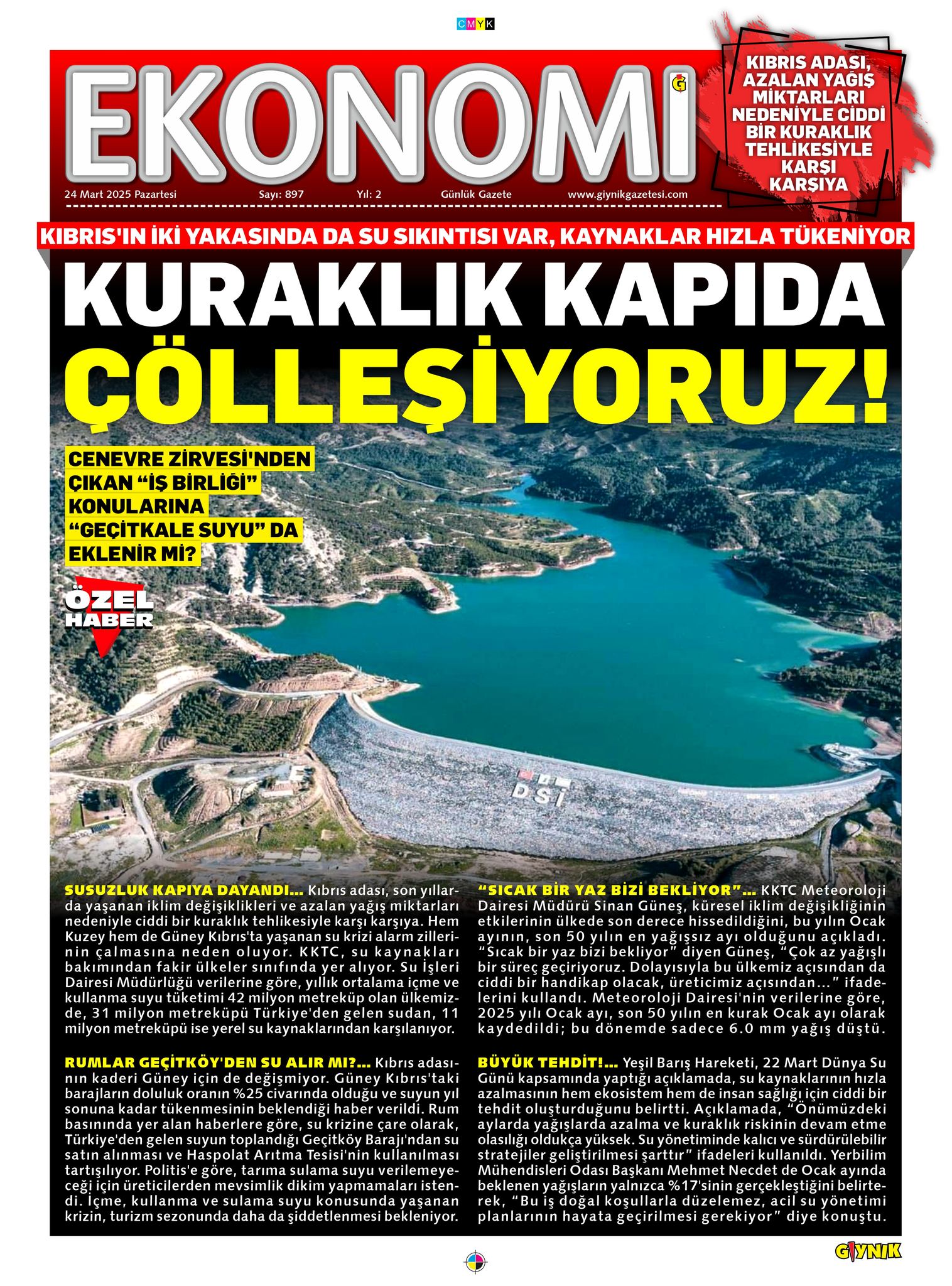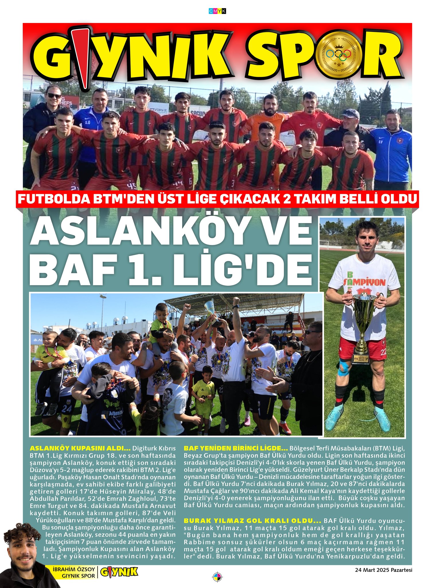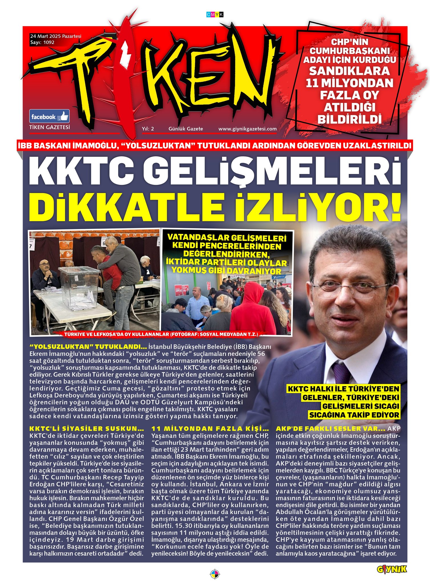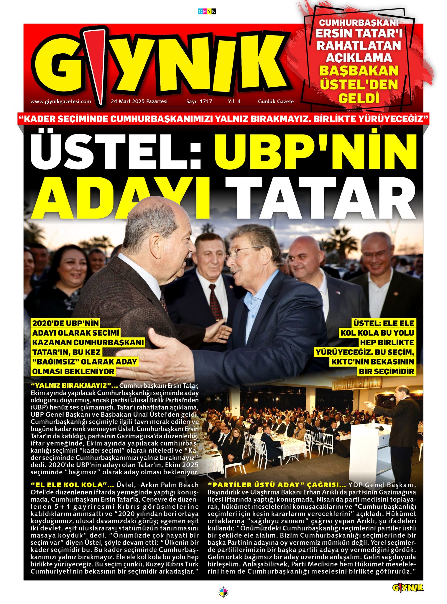 24 Mart Pazartesi 2025, Gıynık Medya manşetleri