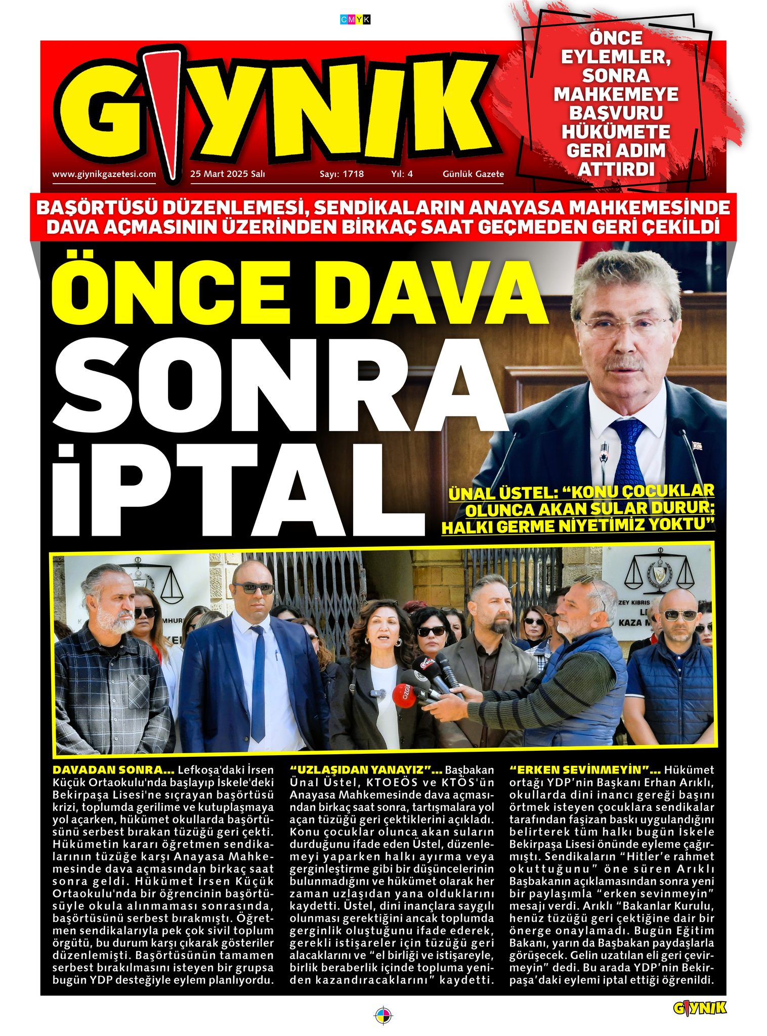 25 Mart Salı 2025, Gıynık Medya manşetleri