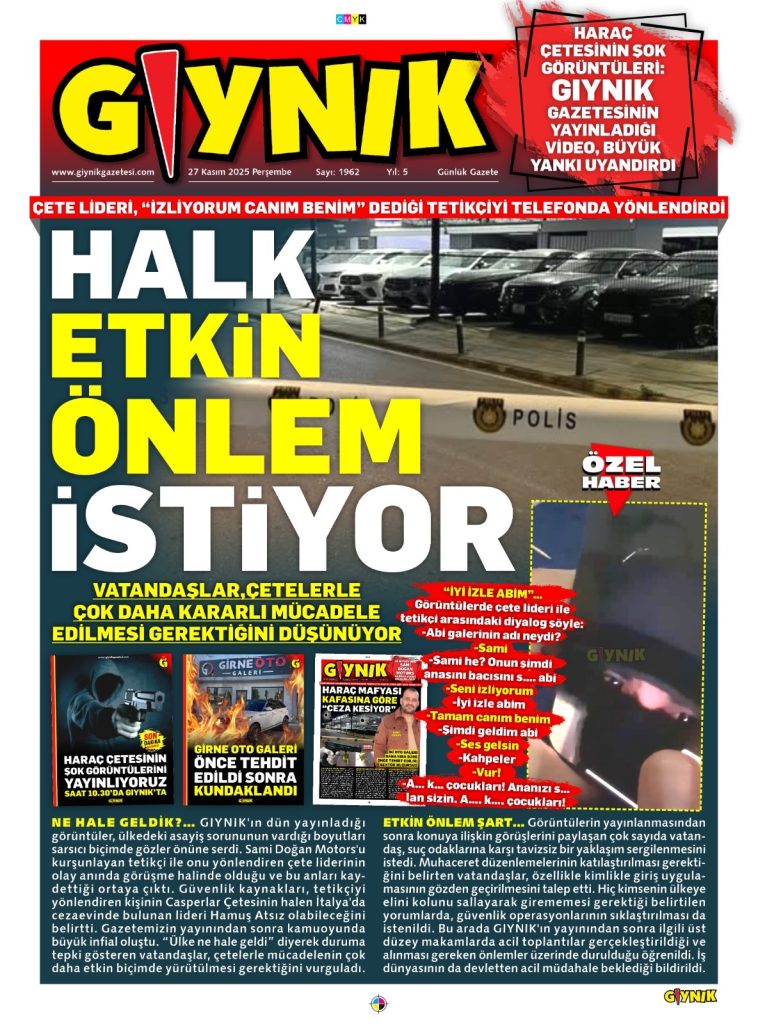 27 Kasım Perşembe 2025, Gıynık Medya manşetleri