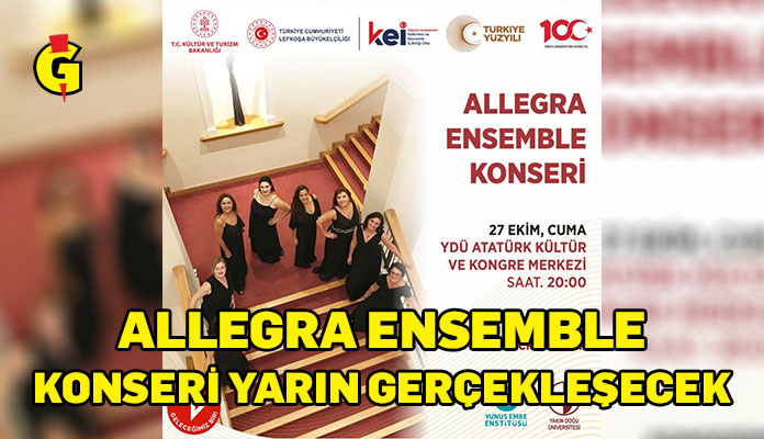 Yunus Emre Enstitüsü’nden yapılan açıklamaya göre, Türkiye Yüzyılı’na yakışır şekilde, kutlanan 100. Yıl dönümü etkinlikleri kapsamında, Türkiye Cumhuriyeti Kültür ve Turizm Bakanlığı, Lefkoşa Büyükelçiliği, Lefkoşa Büyükelçiliği Kalkınma ve Ekonomik İş Birliği Ofisi ve Lefkoşa Yunus Emre Enstitüsü iş birliğinde sahnelenecek Allegra Ensemble konseri ile sanatseverlere müzik ziyafeti sunulacak.