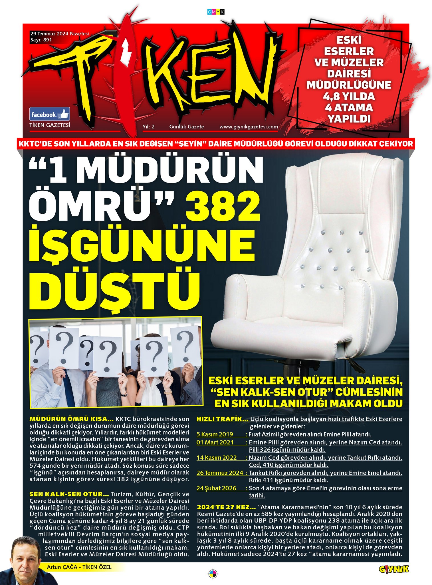 29 Temmuz Pazartesi, Gıynık Medya manşetleri