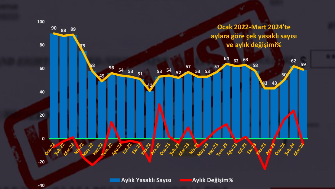 KKTC Merkez Bankası’nın verilerine göre, 2024’ün ilk çeyreğinde çek yasaklı sayısı arttı