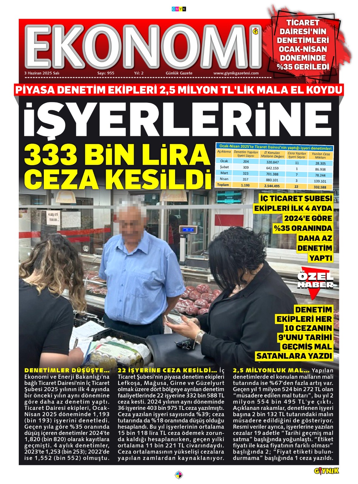 3 Haziran Salı 2025, Gıynık Medya manşetleri