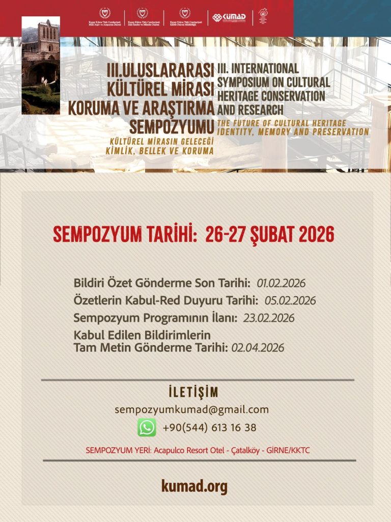 Milli Arşiv Dairesi, Eski Eserler ve Müzeler Dairesi, Kültür Dairesi, Kültürel Mirası Koruma ve Araştırma Derneği (KÜMAD) ve Alashia Terracotta Sanat Topluluğu iş birliğiyle düzenlenecek sempozyum, 26–27 Şubat tarihlerinde Acapulco Resort Otel ana sponsorluğunda gerçekleştirilecek.