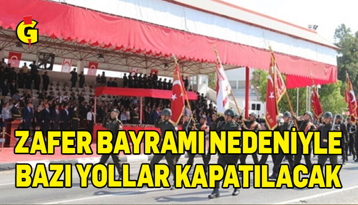 30 Ağustos Zafer Bayramının 101’inci yıldönümü kutlamaları, prova ve tören programı nedeniyle; 27 Ağustos 2022 tarihinde, Lefkoşa’da, saat 08:00’den tören provasının sona ereceği saate kadar ve 30 Ağustos 2023 tarihinde, saat 07:00’den itibaren törenin sona ereceği saate kadar Lefkoşa’da, Alpet (Altınbaş) Petrol ışıkları kavşağı ile Gönyeli Çemberi arasında kalan yol trafik akışına kapatılacak.