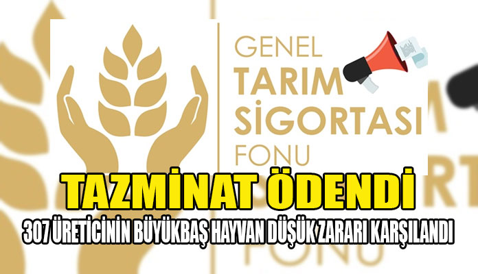 Genel Tarım Sigortası Fonu’ndan yapılan açıklamaya göre, “Hayvancılık Zorunlu Sigorta Tüzüğü” gereğince Ocak ve Şubat aylarına ait büyükbaş hayvan düşük zararı olan toplam 307 üreticiye 570 bin 240 TL tazminat ödendi.