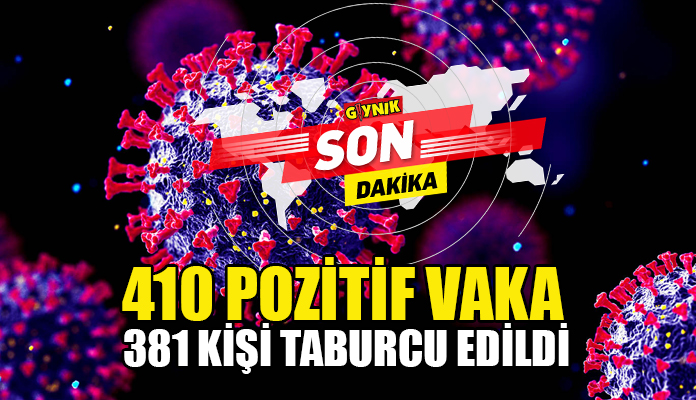 Sağlık Bakanlığından yapılan açıklamaya göre son 24 saatte ülkemizde 10.968 test yapıldı, 410 pozitif vakaya rastlandı ve 381 kişi taburcu edildi.
