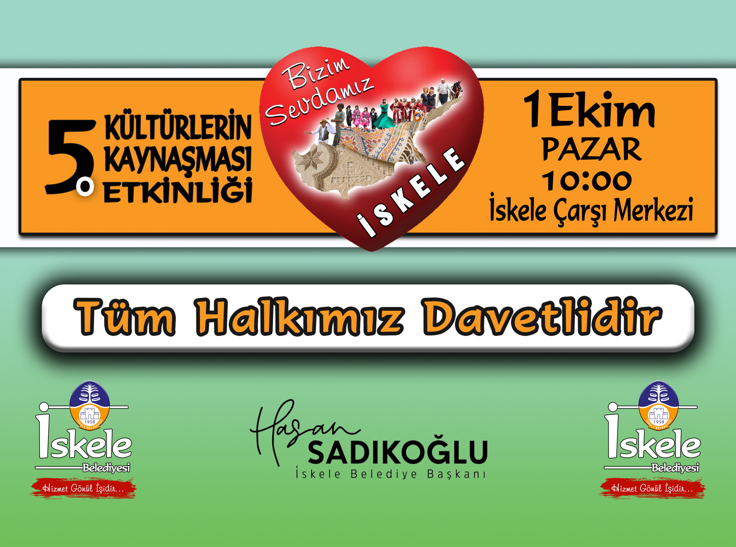 İskele Belediye Başkanı Hasan Sadıkoğlu da, Kuzey Kıbrıs Türk Cumhuriyeti’nde yaşayan herkesi 1 Ekim Pazar günü gerçekleşecek 5. Kültürlerin Kaynaşması Etkinliğine davet etti.