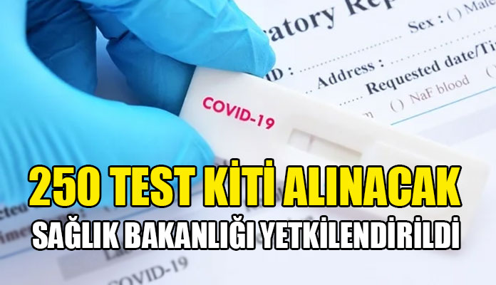Bakanlar Kurulu, yaklaşık 5 milyon TL karşılığında, 100 bin adet antijen test kiti ve 150 bin adet PCR test kiti ve setlerinin temin edilmesi hususunda Sağlık Bakanlığını yetkilendirdi.