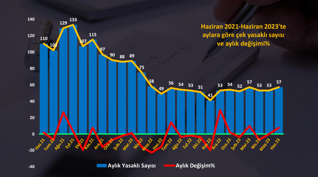 Ülkedeki ekonomik kriz nedeniyle çek yasaklı sayısının yılın ikinci yarısında artacağı tahmin ediliyor. Finans çevreleri çek yasaklıları sayısının 2016’dan beri kademeli olarak düştüğünü, 2018’in son çeyreğindeki döviz krizi ve 2020 ve 2021’deki Covid-19 salgınının çek kullanımını etkilediğini hatırlatırken, bankaların aldıkları önlemlerle çek yasaklılarını minimum seviyede tutmayı başardıklarını belirtiyor. Ancak bu çevreler, 2022’de başlayıp 2023’te iyice hızlanan “ağır ekonomik krizin” bu yılın ikinci yarısında çek yasaklı sayısını patlatmasından endişe ediyor.