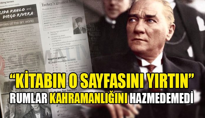 Rum Eğitim Bakanlığı, “Oxford Discover Futures 3, Workbook” isimli kitabı öğrencilere dağıtmadan önce, Atatürk’ün kahramanlığından söz eden 36’ncı sayfanın yırtılmasını istedi.