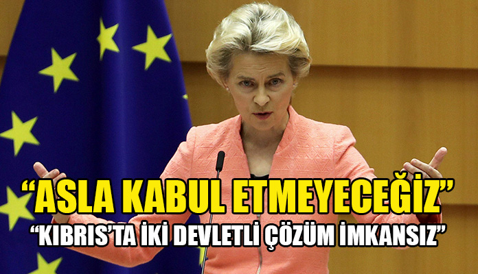 AB Komisyonu Başkanı Ursula von der Leyen, “AB olarak Kıbrıs'ta iki devletli bir çözümü asla kabul etmeyeceğiz. Erdoğan'a bu mesaj gönderildi. Bizzat kendim söyledim. Şimdi olumlu bir sinyal gönderme kararı kendisine kalmış durumda” ifadelerini kullandı