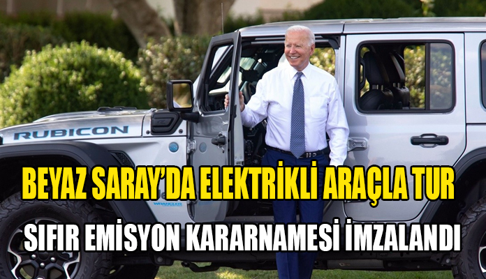 ABD Başkanı, konuşmasının ardından Sıfır Emisyon Kararnamesi’ni imzaladıktan sonra, elektrikli Jeep Wrangler ile Beyaz Saray’da tur attı.