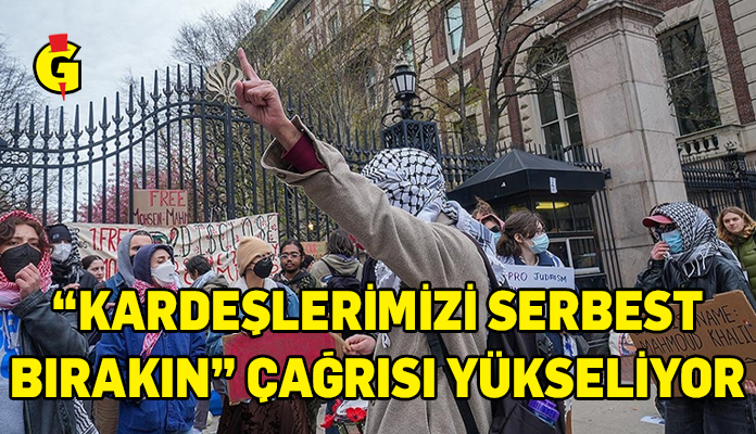 Columbia Üniversitesi öğrencileri ve mezunları, ellerinde “Kardeşlerimizi serbest bırakın” yazılı pankartlar tutarak üniversitenin girişinde protesto düzenledi.
