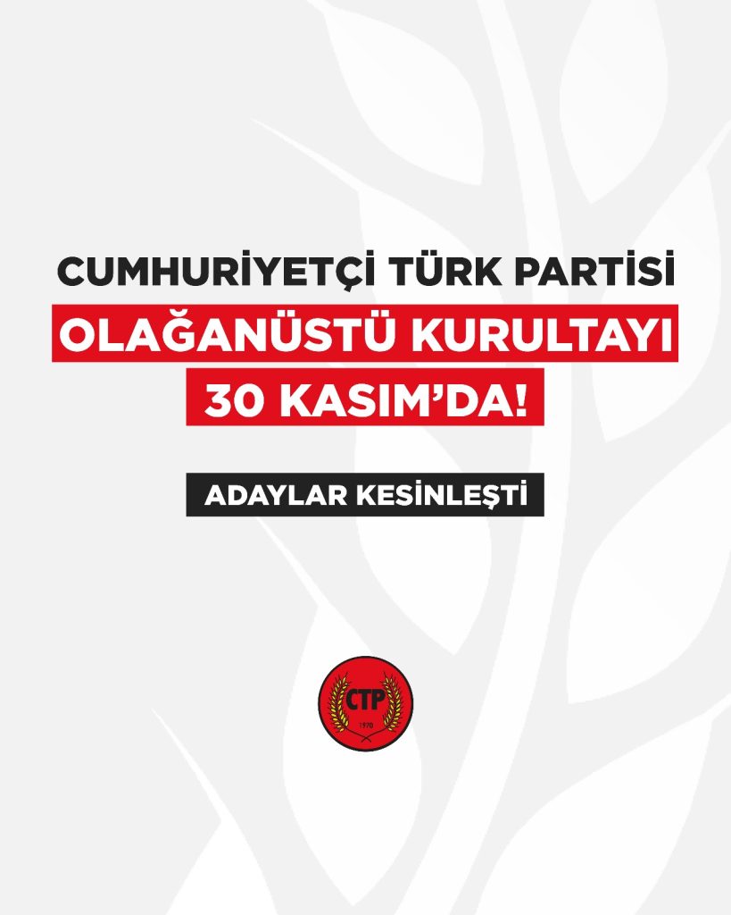 CTP Olağanüstü Kurultayı’nın gündeminde; açılış, divanın oluşturulması, karar tasarılarının okunması ve görüşülmesi, genel başkan adaylarının tanıtımı ve genel başkan seçimi yer alacak.