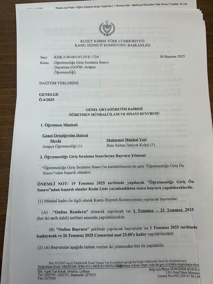 Kıbrıs Türk Orta Eğitim Öğretmenler Sendikası (KTOEÖS) Başkanı Selma Eylem, Milli Eğitim Bakanlığı'na bağlı Genel Ortaöğretim Dairesi'nin Hala Sultan İlahiyat Koleji için ‘Arapça öğretmeni’ münhali açmasına tepki gösterdi.