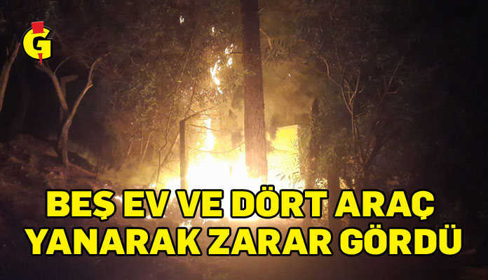 Açıklamada, yangın ile ilgili yapılan detaylı incelemede, 2 evin çatısı, 1 evin çatı ve pencereleri, 1 evin kapı ve pencereleri, klima dış ünitesi ile evin avlusundaki ambar odası, ahşap çardak ve plastik su deposu, kullanılmayan eşyasız bir evin iç kapı ve pencereleri ile 4 aracın zarar gördüğünün tespit edildiği kaydedildi.