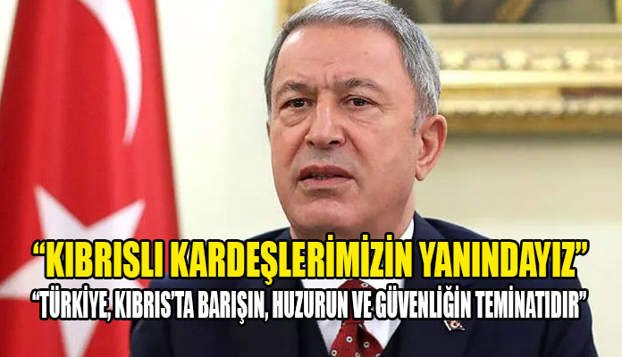 Türkiye’nin, Kıbrıs’ta barışın, huzurun ve güvenliğin teminatı olduğunu ve olmaya devam edeceğini vurgulayan Türkiye Milli Savunma Bakanı Akar, “Biz daima Kıbrıslı kardeşlerimizin yanındayız ve yanında olmaya devam edeceğiz” ifadelerini kullandı. Hulusi Akar, Türkiye’nin diyalog çağrılarının zafiyet olarak görülmemesini gerektiğine dikkati çekti. Akar, “Biz barışçıl yol ve yöntemlerle sorunları çözmeye çalışıyoruz. Fakat diğer taraftan da hakkımızı, hukukumuzu çiğnetmeyiz dediğimiz zaman da bu bir tehdit değil. Bu manada biz ülkemizin ve KKTC‘nin hak, alaka ve menfaatlerini korumakta azimliyiz, kararlıyız çok şükür buna da muktediriz. Bunun bilinmesi lazım” dedi.